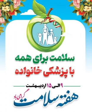 با توجه به اینکه سازمان جهانی بهداشت هرساله روزی را برای گفتمانسازی و جریانسازی در حوزه سلامت و تمرکز همه مسئولین و افکار عمومی به این موضوع تعیین و اعلام مینماید بر همین اساس در کشور ما نیز ۹ لغایت ۱۵ اردیبهشت به عنوان هفته سلامت و با شعار "سلامت برای همه با پزشکی خانواده"نامگذاری کرده است.