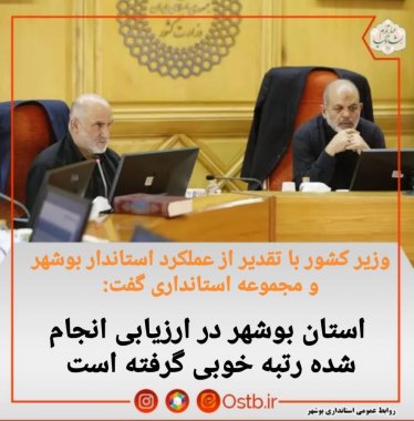 نوای جنوب:وزیر کشور با تقدیر از عملکرد استاندار بوشهر و مجموعه استانداری گفت: استان بوشهر در ارزیابی انجام شده رتبه خوبی گرفته است.
