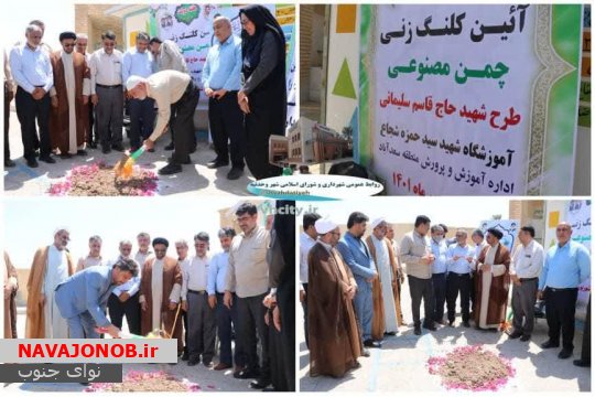 تصاویر از کلنگ زنی و افتتاح زمین چمن می باشد