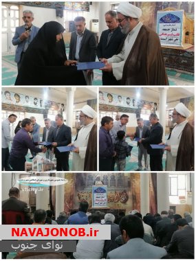 نوای حنوب: به گزارش روابط عمومي شهرداری و شورای اسلامی شهر وحدتیه در این آئین که روز جمعه ۲۷ بهمن ماه ودر آئین نماز جمعه شهروحدتیه برگزار گردید حجت الاسلام صمصامی امام جمعه شهر، مهندس ارشدی شهردار وحدتیه و..... حضور داشتند