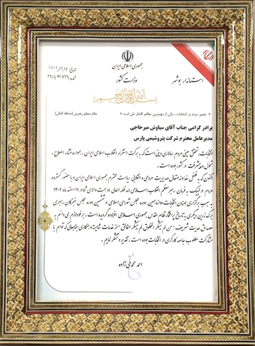 نوای جنوب:عملکرد موثر کارمندان و خانواده های پتروشیمی پارس در انتخابات ۱۴۰۲ مورد تقدیر استاندار بوشهر قرار گرفت
