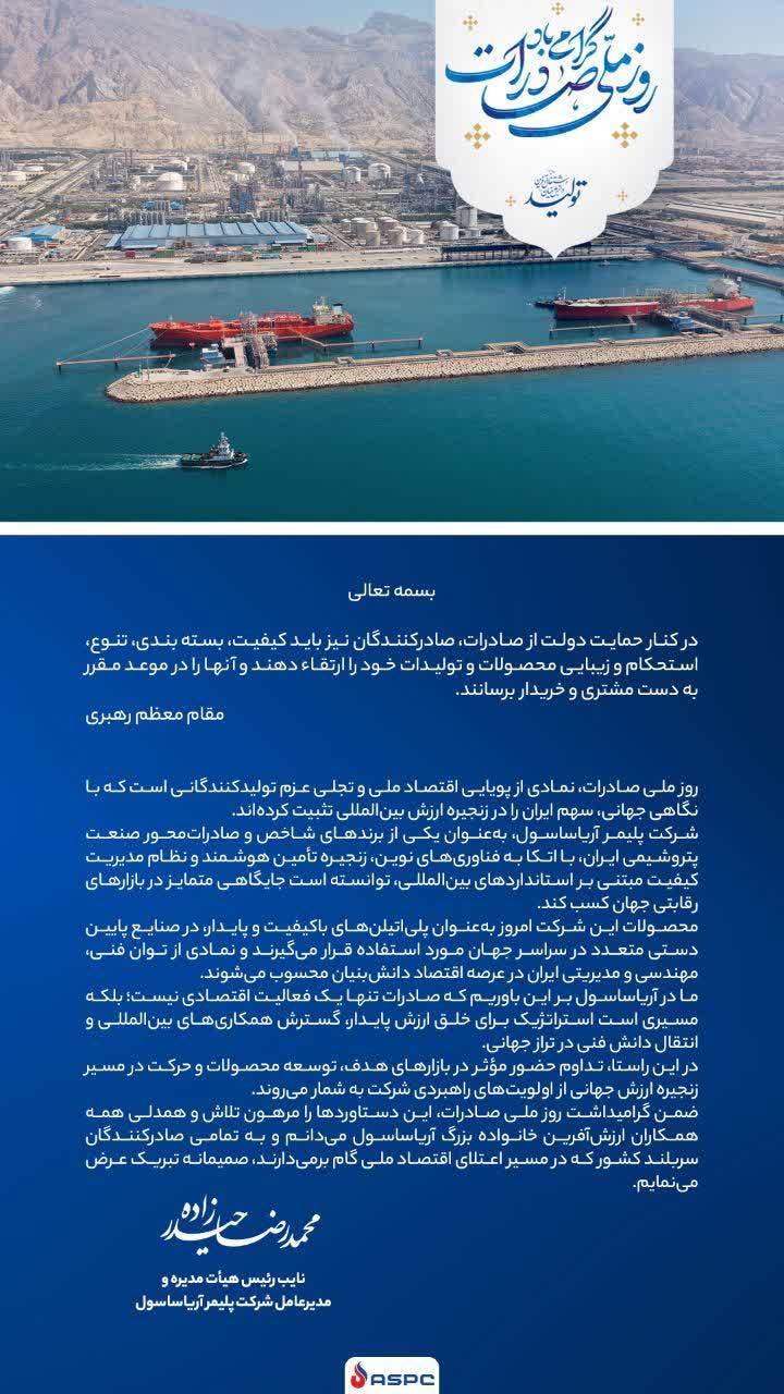 - پیام تبریک مدیرعامل پتروشیمی خارک به مناسبت روز ملی صادرات؛ پتروشیمی خارک، پیشگام صادرات غیرنفتی کشور