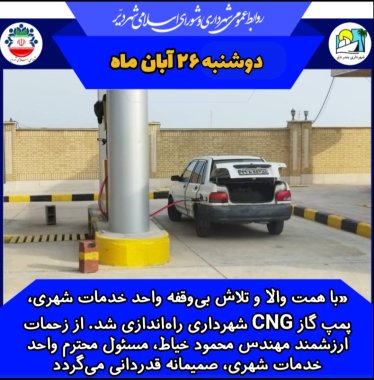 - پمپ گاز cngشهرداری دیر پس از تعمیرات بهزودی در آستانه راه اندازی میباشد.