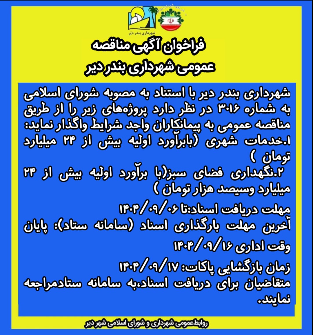 - اطلاعیه روابطعمومی شهرداری بندر دیر