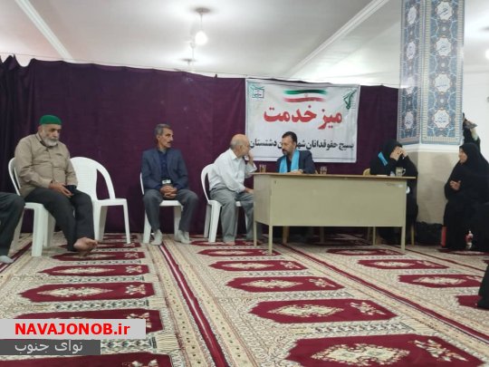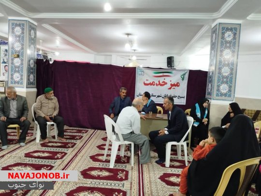 نوای جنوب: پایگاه شهدای بسیج با همکاری بسیج حقوقدانان شهرستان دشتستان و دفتر حمایت حقوقی و قضایی ایثارگران با مدیریت حاج محمدعلی دهقانی در مسجد امام هادی علیه السلام به مناسبت هفته مبارک بسیج میز خدمت برگزار نمود که نمازگزاران و بسیجیان پایگاه مقاومت بسیج برادران و خواهران مشکلات حقوقی را با وکلا همراه ایشان بیان داشتند و مشاوره حقوقی دریافت نمودند . با توجه به اطلاع رسانی خوب فرمانده پایگاه مقاومت بسیج آقای قلندر ترک زاده، استقبال خوبی انجام گرفت