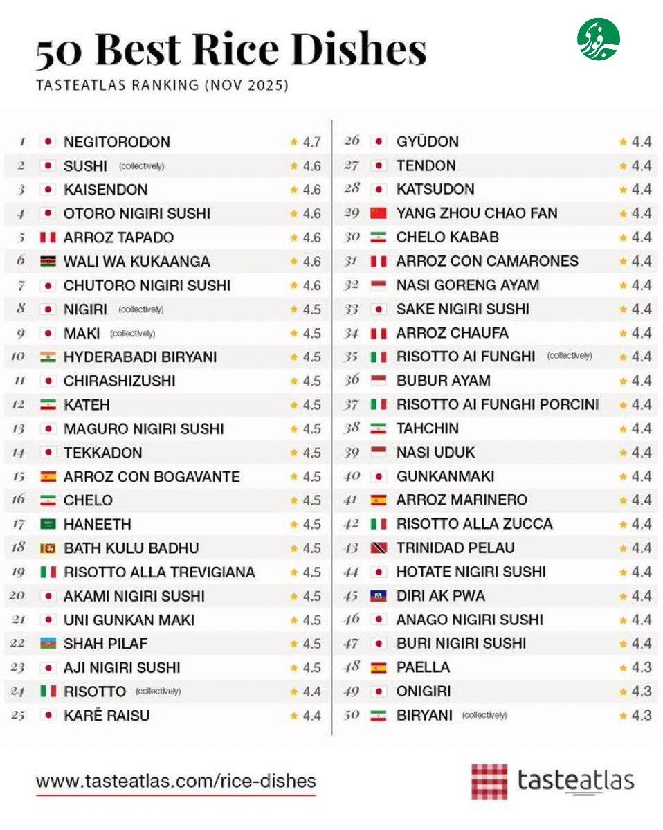 TasteAtlas که بهعنوان یکی از معتبرترین مرجعهای معرفی غذاهای سنتی جهان شناخته میشود، با این رتبهبندی توجه ویژهای به جایگاه غذاهای ایرانی نشان داده است. کارشناسان این وبسایت تأکید کردهاند که غذاهای برنجی ایران به دلیل ترکیب طعم، سادگی در پخت و محبوبیت گسترده، توانستهاند در میان بهترینها بدرخشند.