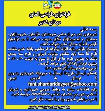 - :فراخوان طراحی المان میدان غدیر شهرداری بندر دیر