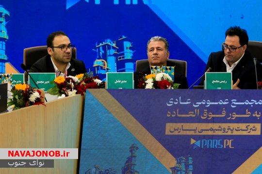 نوای جنوب:مجمع عمومی عادی بهطور فوقالعاده شرکت پتروشیمی پارس با هدف تعیین اعضای هیئتمدیره و با حضور دکتر عبدالکریم پهلوانی مدیر عامل، سهامداران و نمایندگان قانونی آنان برگزار شد.مجمع عمومی عادی بهطور فوقالعاده شرکت پتروشیمی پارس با هدف تعیین اعضای هیئتمدیره و با حضور دکتر عبدالکریم پهلوانی مدیر عامل، سهامداران و نمایندگان قانونی آنان برگزار شد.
