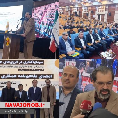 - :۱۴ مگاپروژه وزارت نیرو برای عبور از پیک بار تابستان ۱۴۰۵/ ظرفیت نیروگاههای خورشیدی بوشهر تا پایان سال به ۱۶۰ مگاوات میرسد
