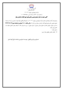 دستور جلسه : • انتخاب اعضای حقوقی هیات مدیره.