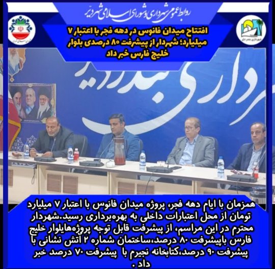 نوای جنوب:به مناسبت فرارسیدن ایام خجسته دهه فجر، پروژه میدان فانوس با حضور دکتر سجادی فرماندار فرماندار محترم شهرستان دیر ،شهردار و اعضای محترم شورای اسلامی شهر دیرو جمعی از مسئولین به بهرهبرداری رسید.