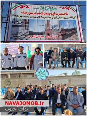 نوای جنوب:با حضور فرماندار و به مناسبت نکوداشت دهه مبارک فجر برگزار گردید؛ آئین کلنگ زنی احداث مدرسه ۱۲ کلاسه مهدیه شهر وحدتیه- ساخت مدرسه ای به وسعت یک شهر در شهر وحدتیه